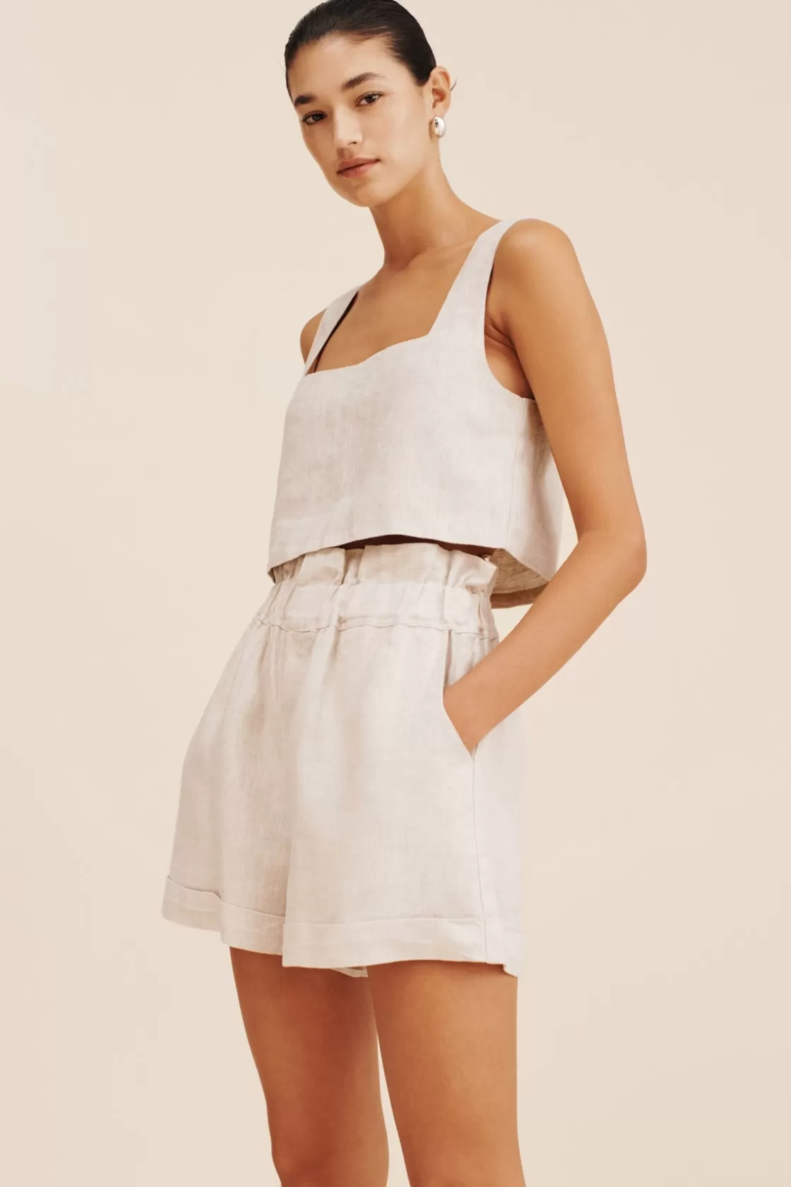 Our best-selling Ducky Shorts are airy, minimal and versatile. Made from medium weight linen, they feature an elasticated waistband and cuffed hems. The Ducky shorts are a relaxed paper bag style short – perfect for beach days or Sunday brunch.