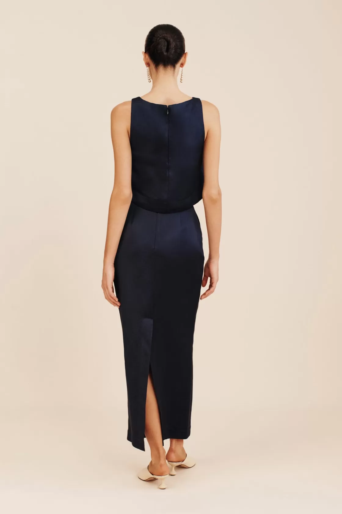 The Joy Crop Top has a glossy satin finish, making it perfect for evening wear or special events. It features an elegant high neckline and boxy, cropped silhouette. Style yours as a set with the Gigi Pencil Skirt or Leila Trouser.