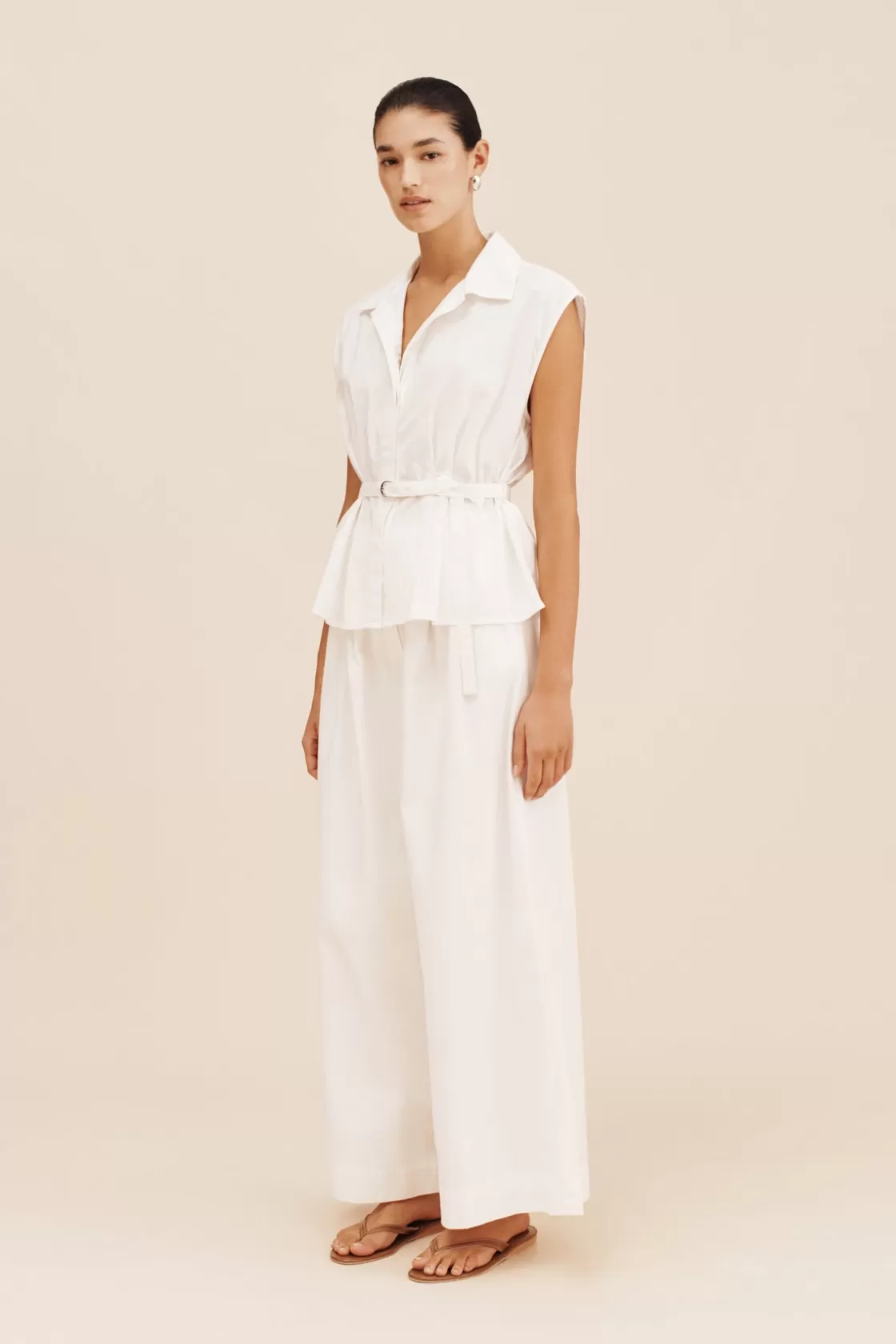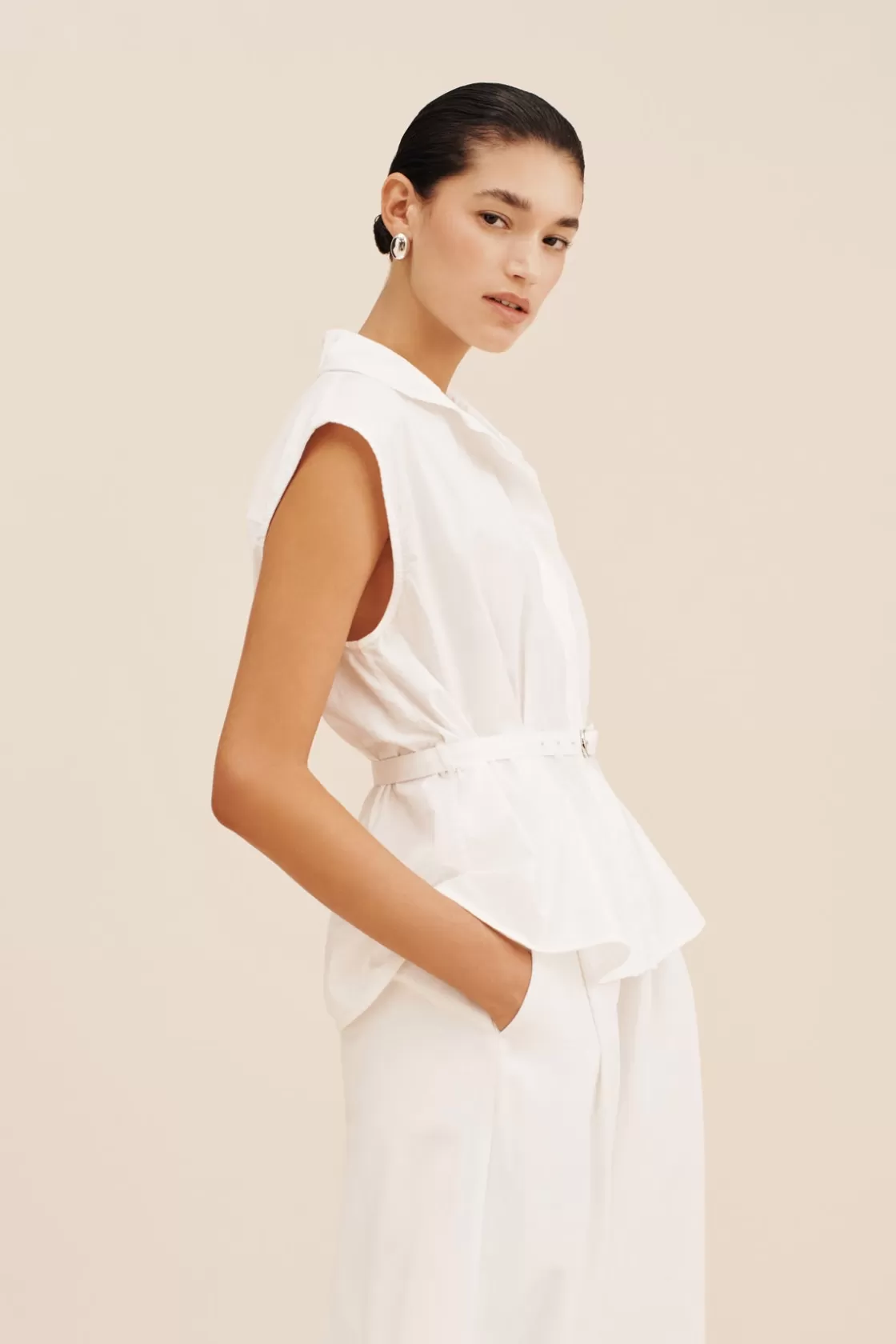 Elegant and versatile, the Juno Shirt is cut from soft cotton sheeting and features short sleeves, a collared neckline and centre front buttons. It has a detachable waist belt which creates volume throughout the hem. Style yours as a set with the coordinating Wesley Trouser or pair it with denim.