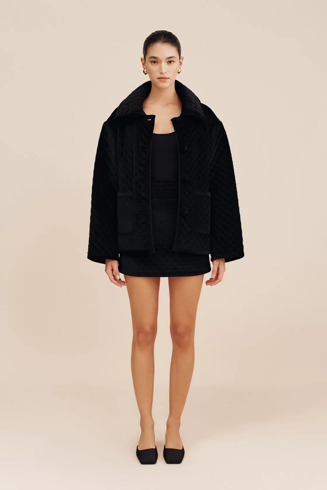 Crafted from luxurious cotton velvet, the Marley Jacket is finished with quilted stitching and features a classic wide collar. Its roomy silhouette makes it perfect for layering underneath. Style yours with the coordinating Romeo Skirt.