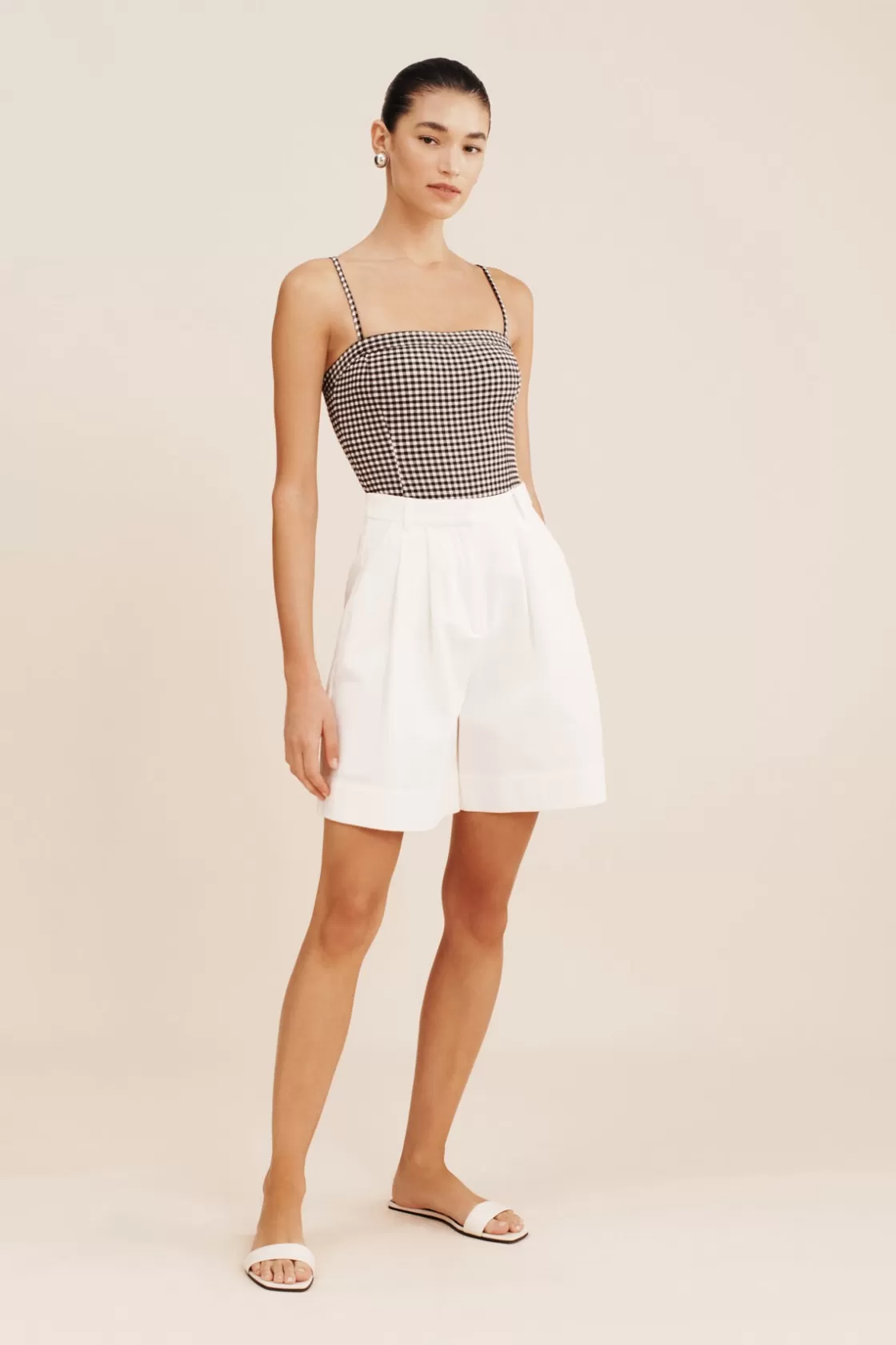 Patterned with nostalgic gingham, The Nora One Piece features a flattering square neckline and has a high, medium-coverage cut. The thin straps can be taken off, allowing for a strapless silhouette to be achieved if desired. Wear it on its own or layer it under the Wesley Short.