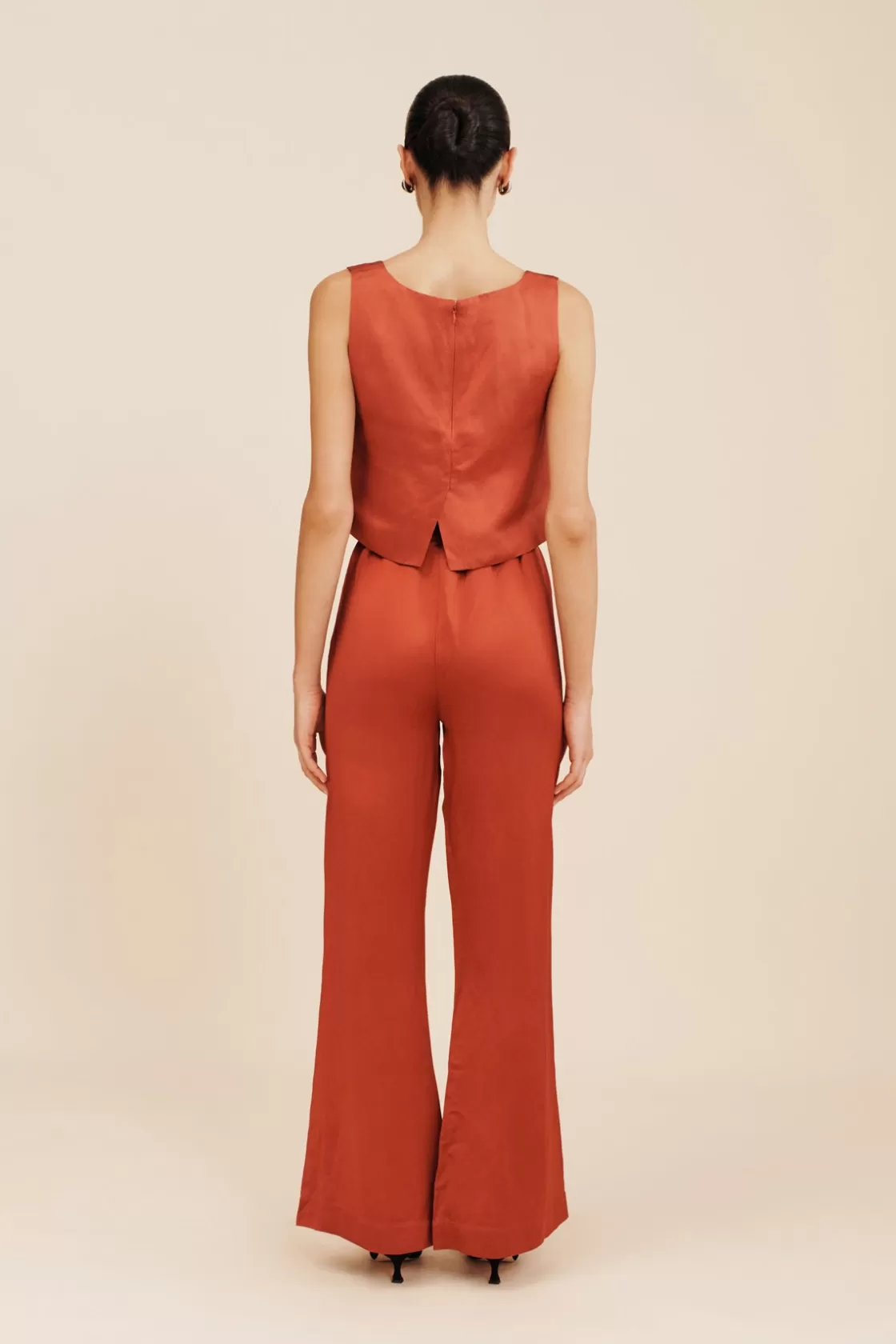 The Tia Trousers have a glossy satin finish, making them perfect for evening wear or special events. Designed to sit high on the waist, they’re fitted throughout the hips before flaring out below the knees. Styles yours as a set with the coordinating Gigi Crop Top.